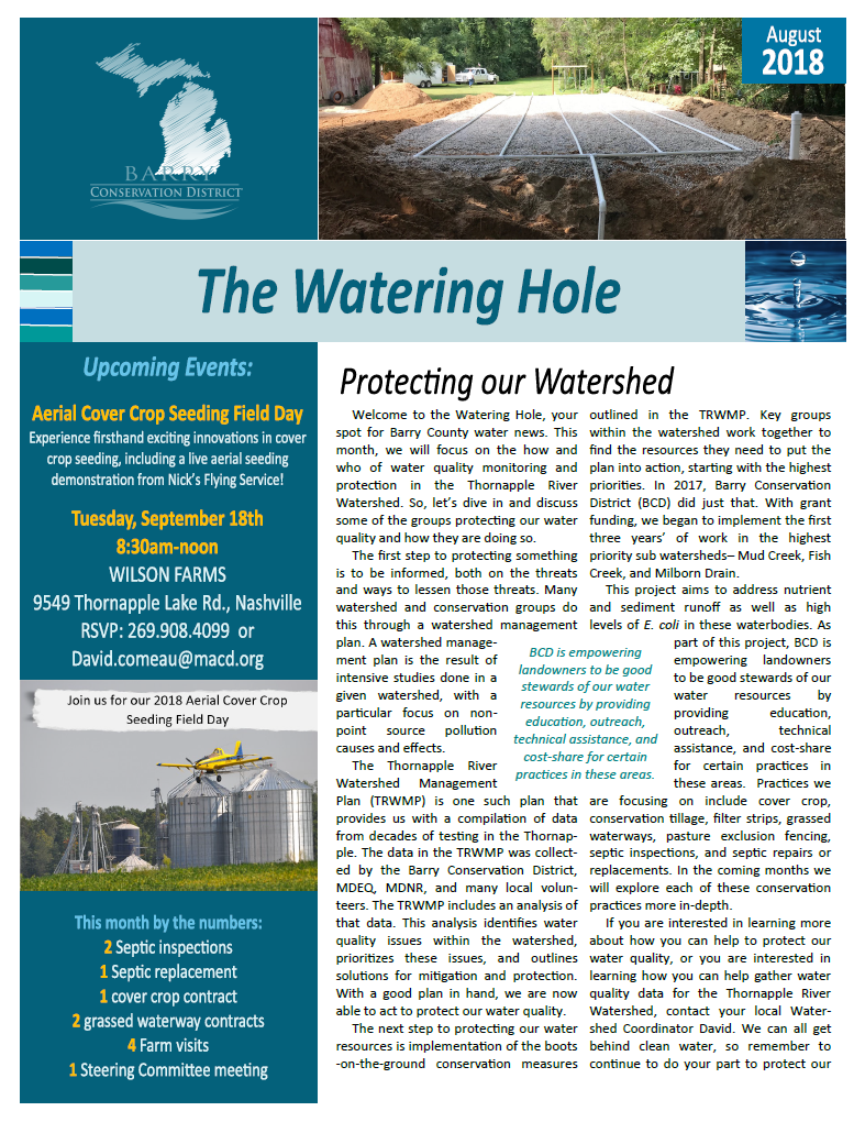 Barry Conservation District - Watering Hole Newsletter Rachel FrantzSeptember 28, 2018Thornapple River Facebook0 Twitter LinkedIn0 Pinterest0 0 Likes